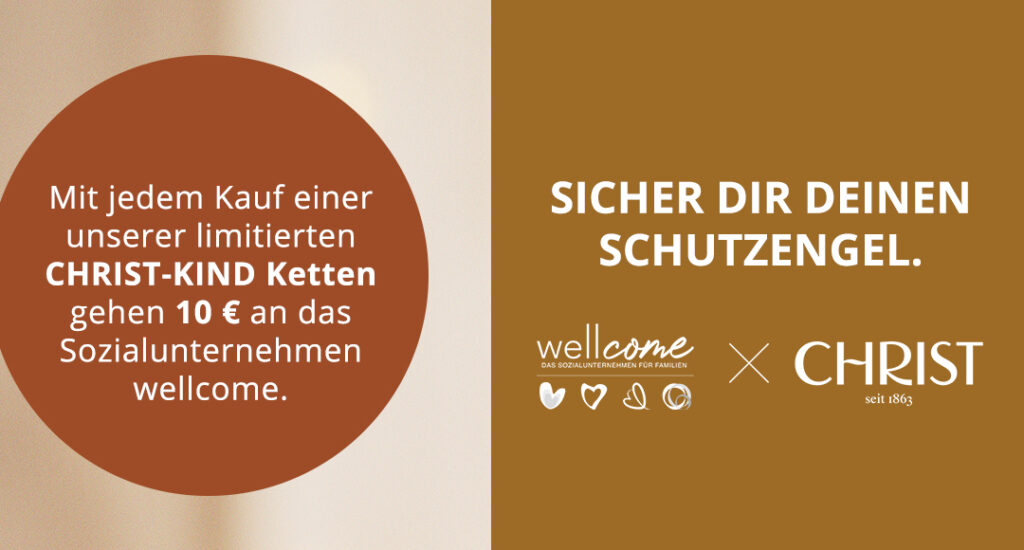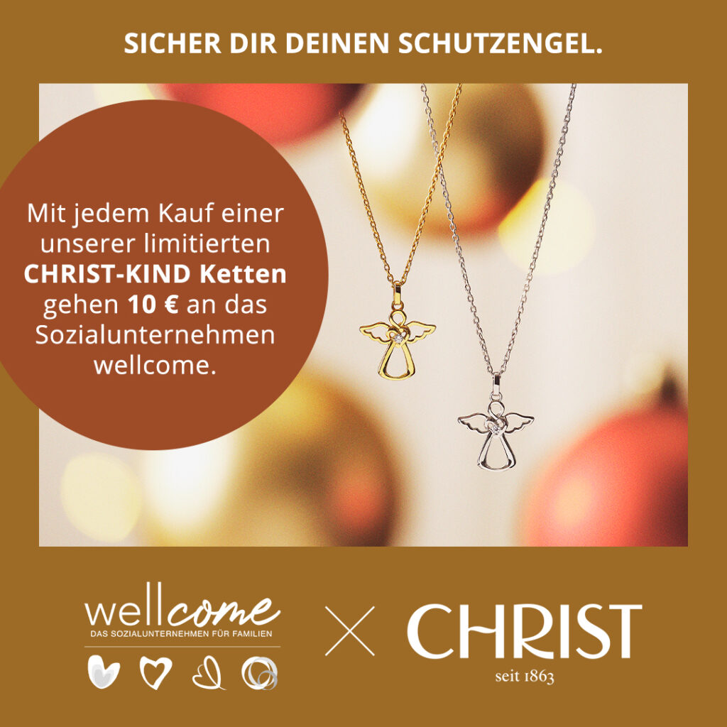 Die CHRIST-KIND Kette vereint festliche Eleganz mit Nächstenliebe: 10 € jedes Kaufs gehen an wellcome, ein Sozialunternehmen, das Familien in Not hilft. Ein Geschenk, das doppelt Freude macht. Sichere dir deinen Schutzengel – jetzt bei CHRIST