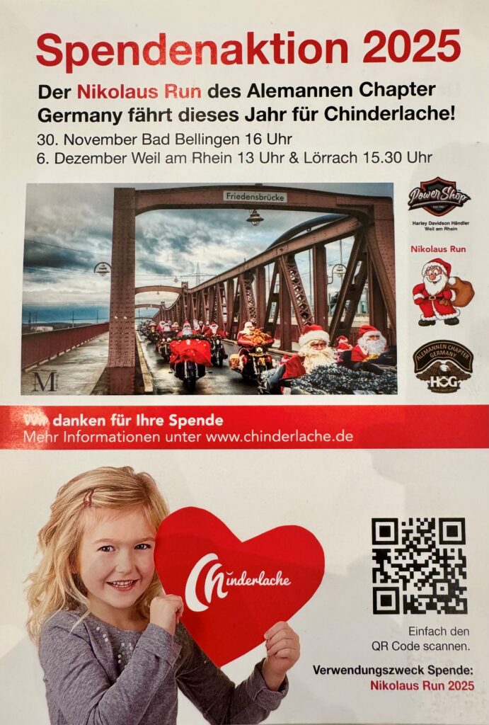 Am 06.12.2025 um 13 Uhr besucht uns das Alemannen Chapter traditionell beim Nikolaus Run für den Guten Zweck an der Dreiländergalerie.